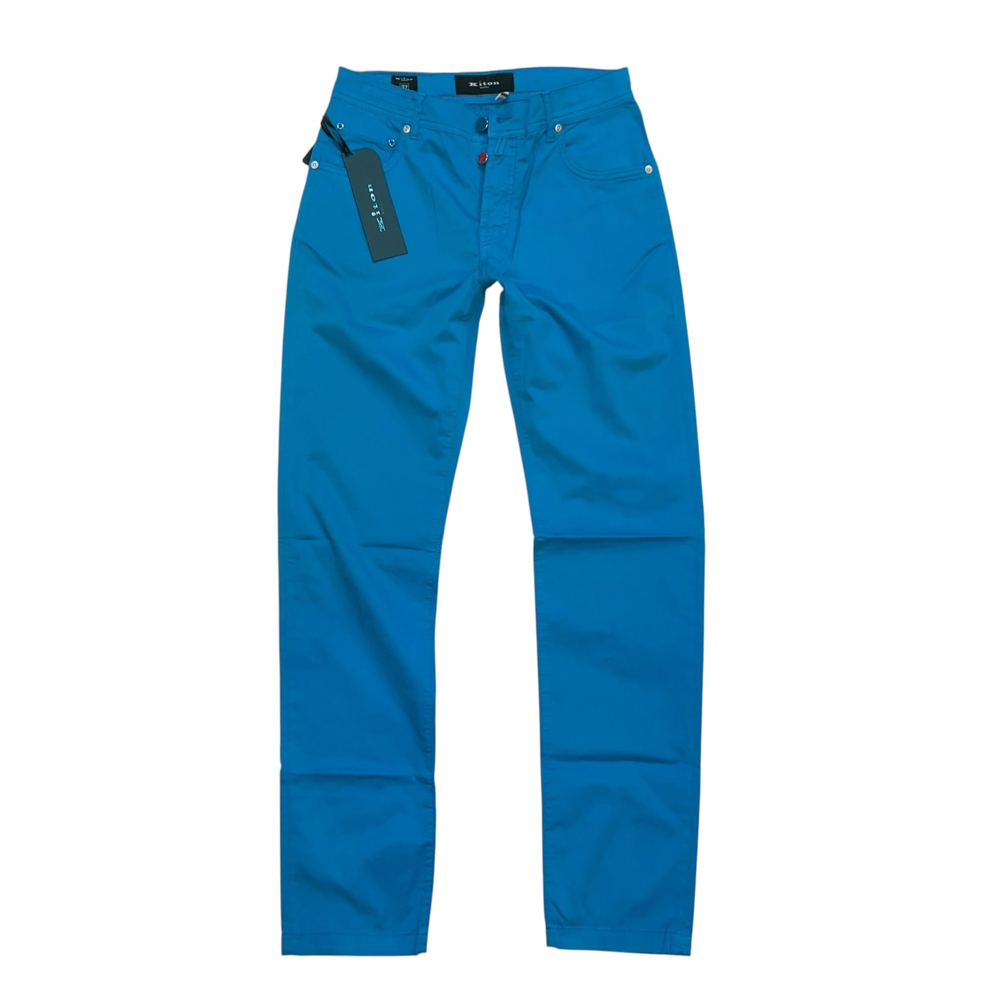 19万 新品 Kiton 総手縫い スカイブルー 5ポケット パンツ 32