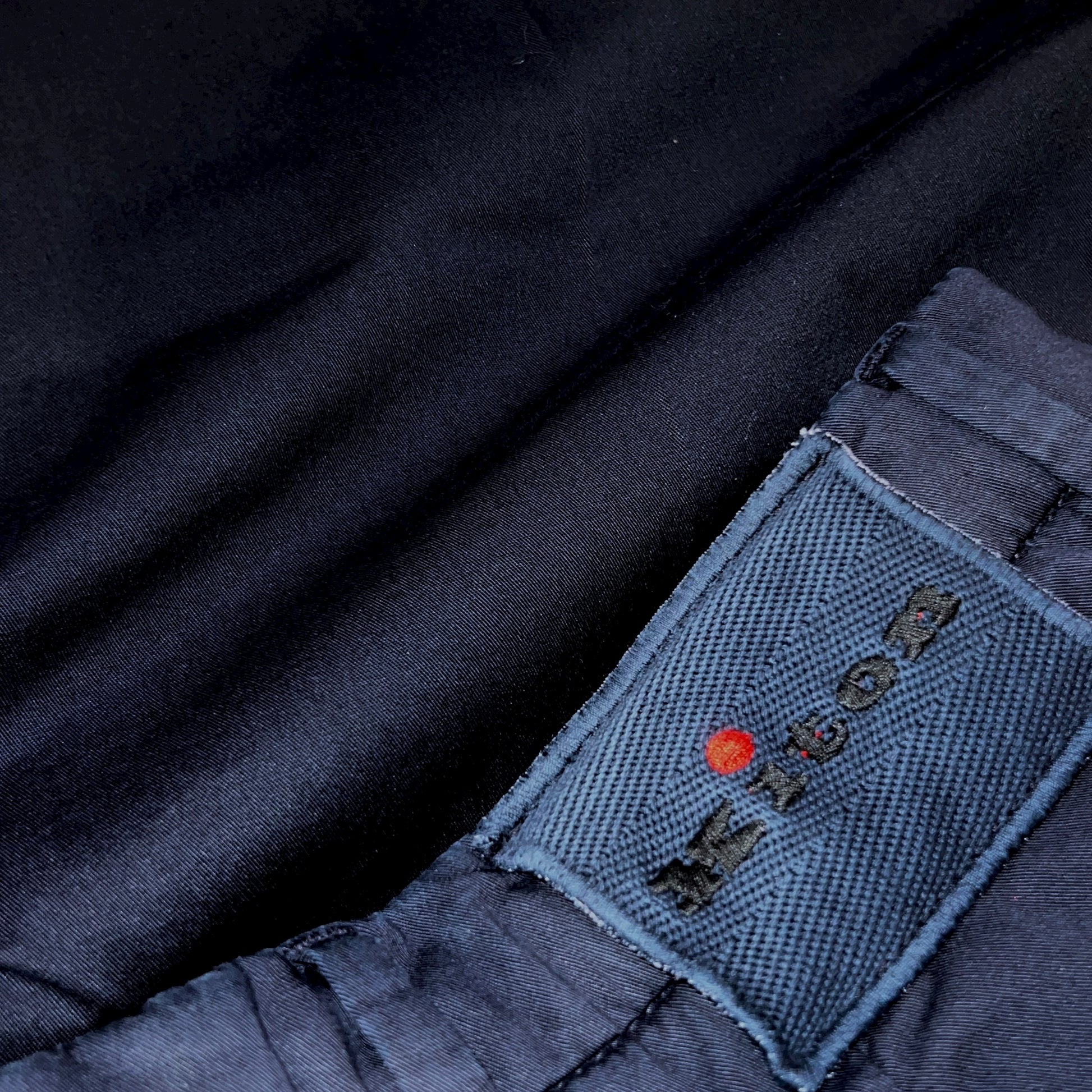 19万 新品 Kiton 総手縫い 洗い ダークブルー チノ パンツ 32