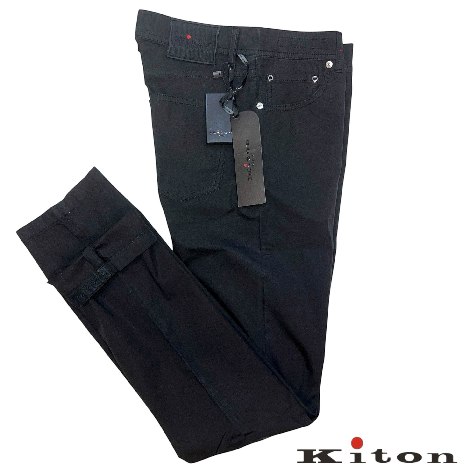 19万 新品 Kiton 総手縫い 超定番 ブラック 5ポケ パンツ 32