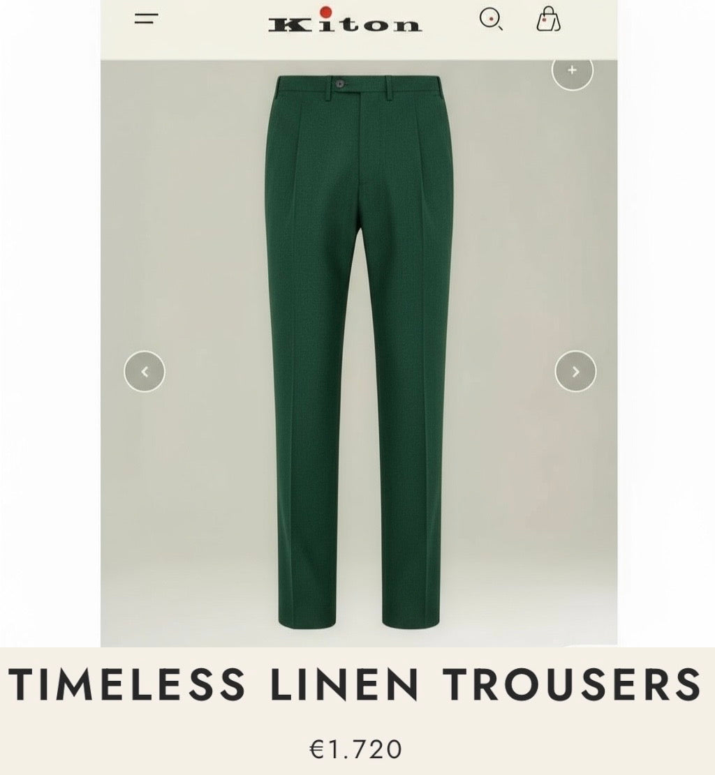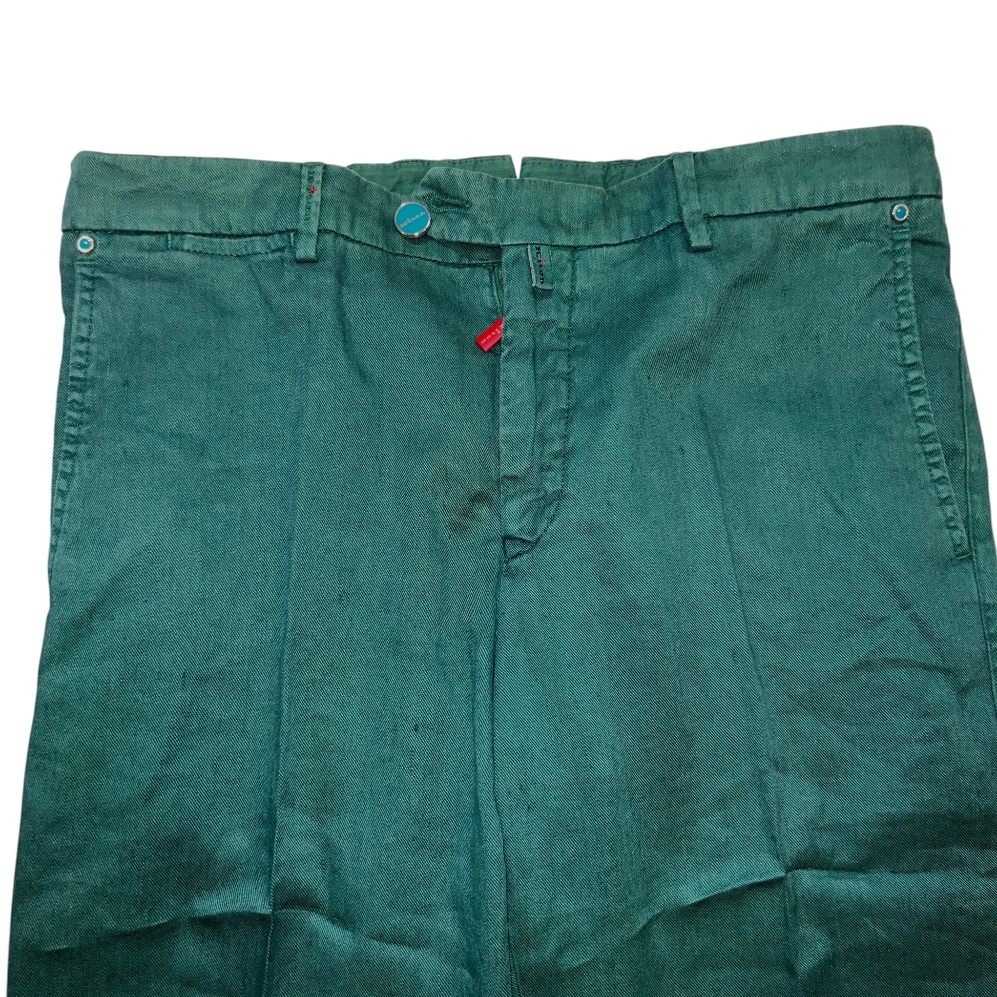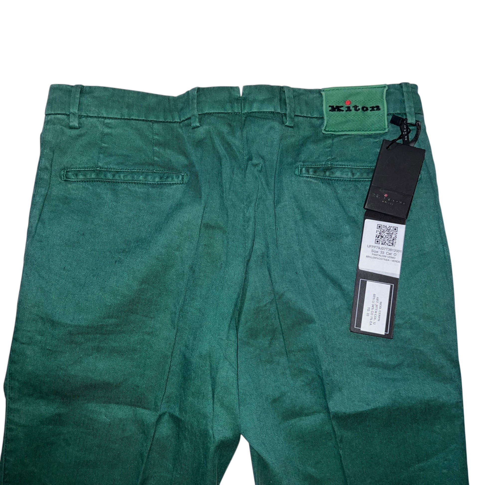 27万 新品 Kiton 総手縫い グリーン コットンリネン 5ポケット パンツ