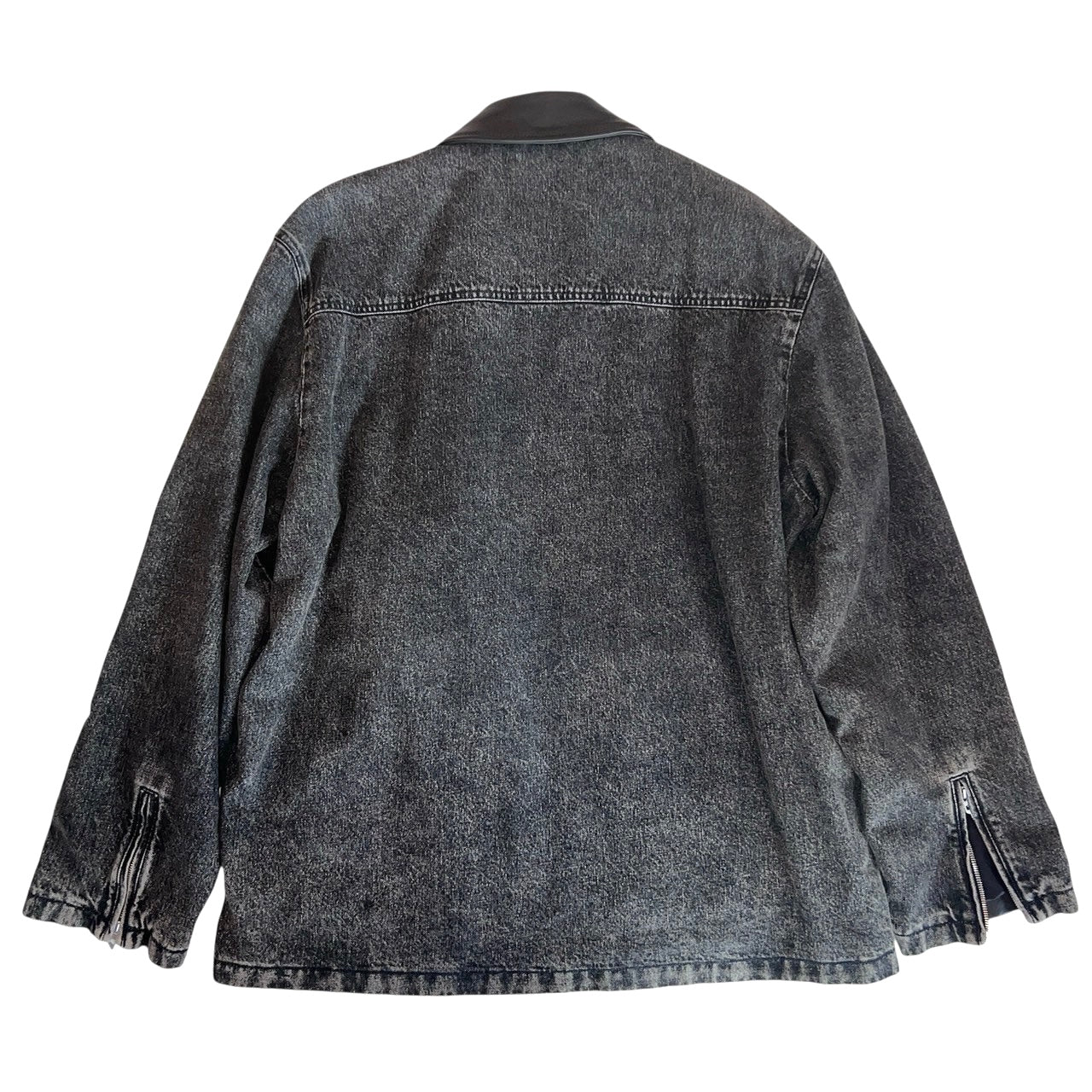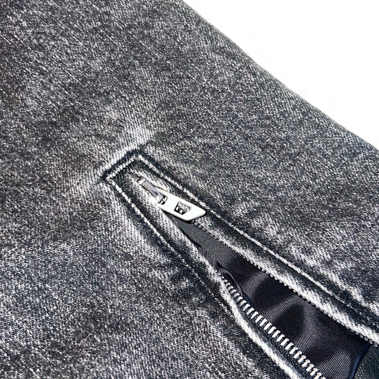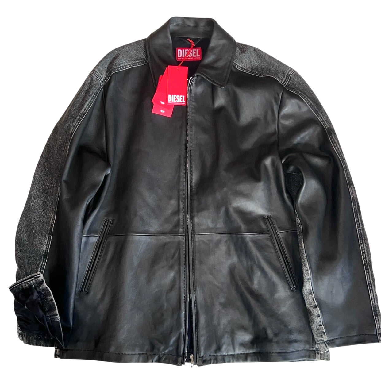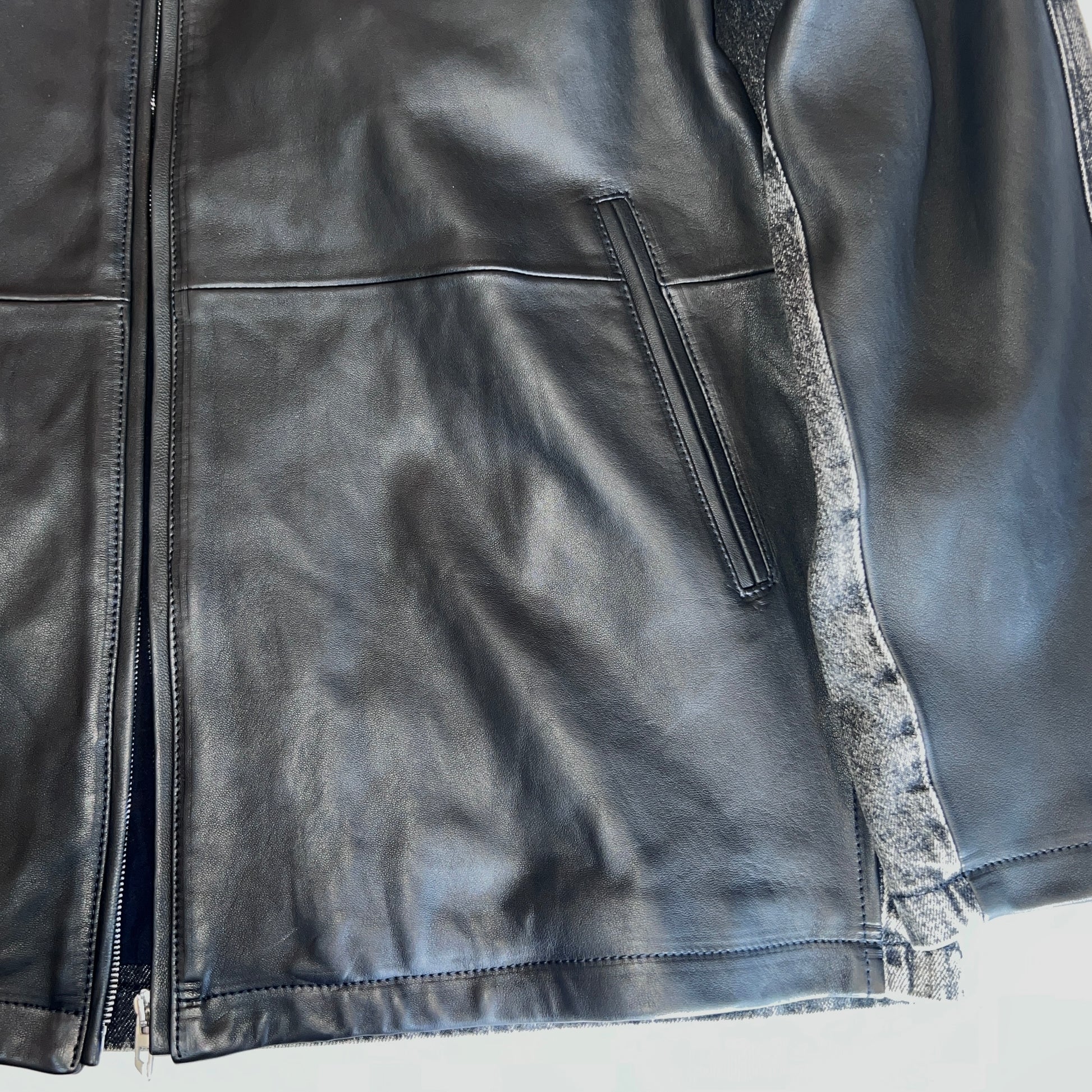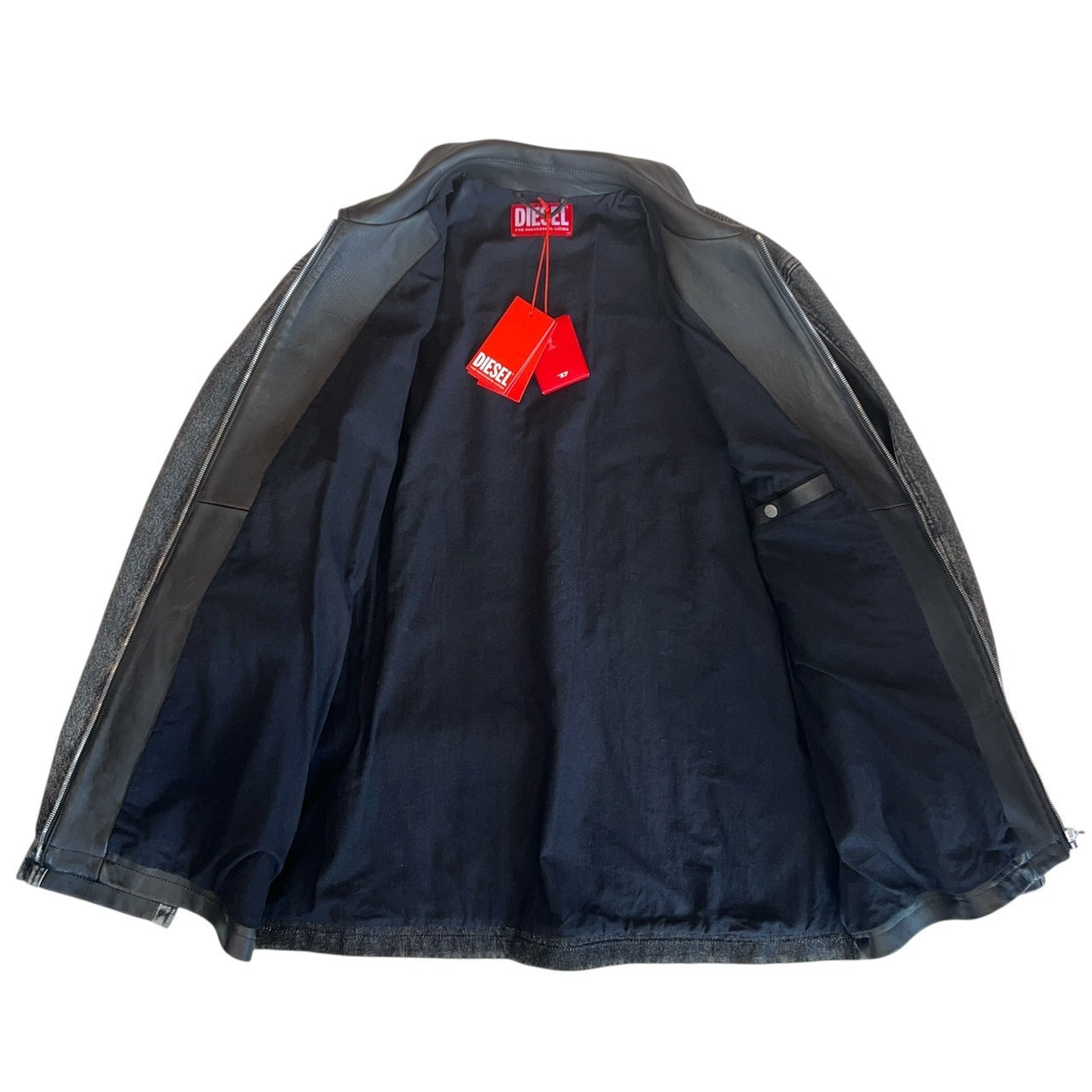 20万 DIESEL シープスキン 麻デニム イタリア製 レザージャケット 黒