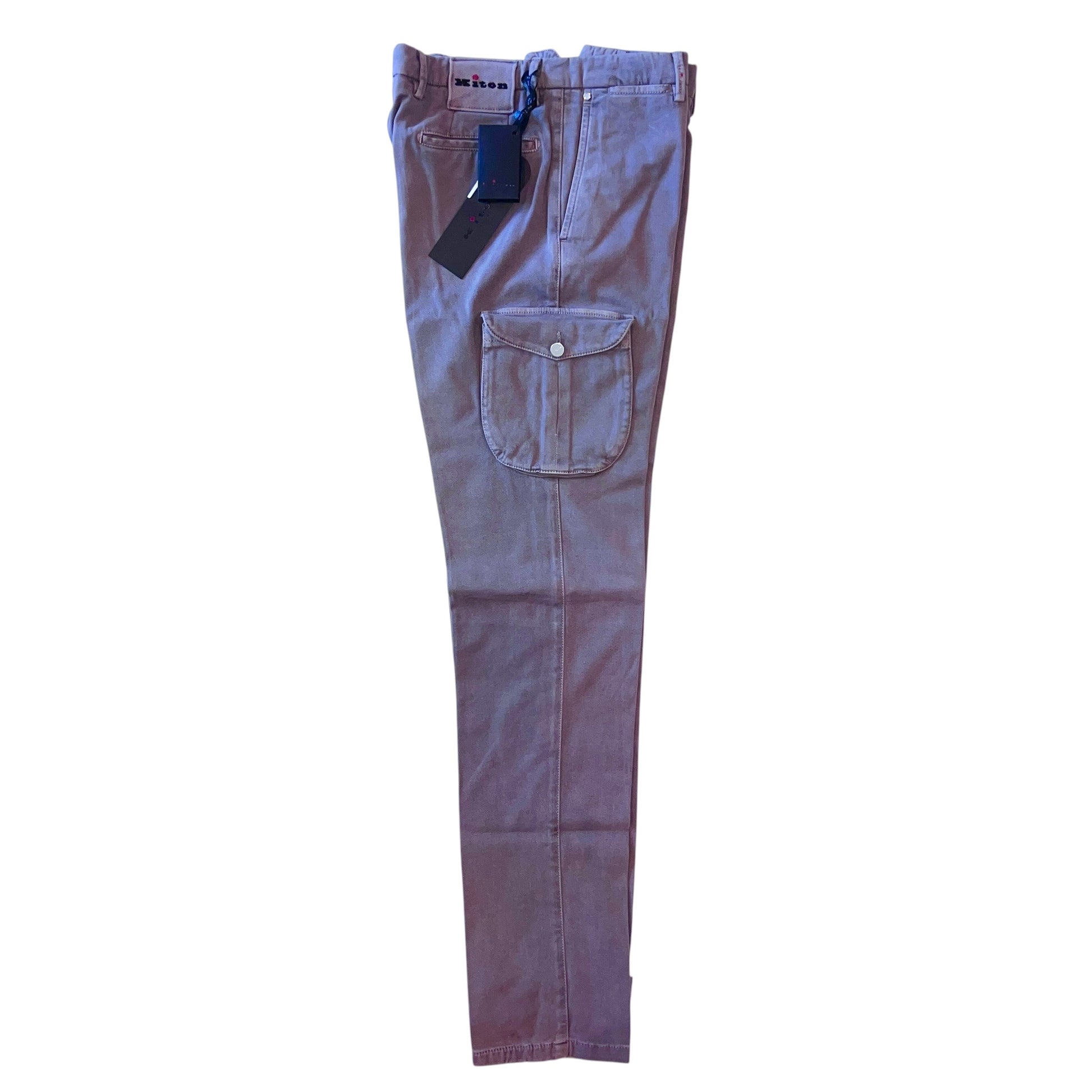 21万 新品 Kiton 総手縫い 妙味 アッシュド紫グレー カーゴパンツ 32