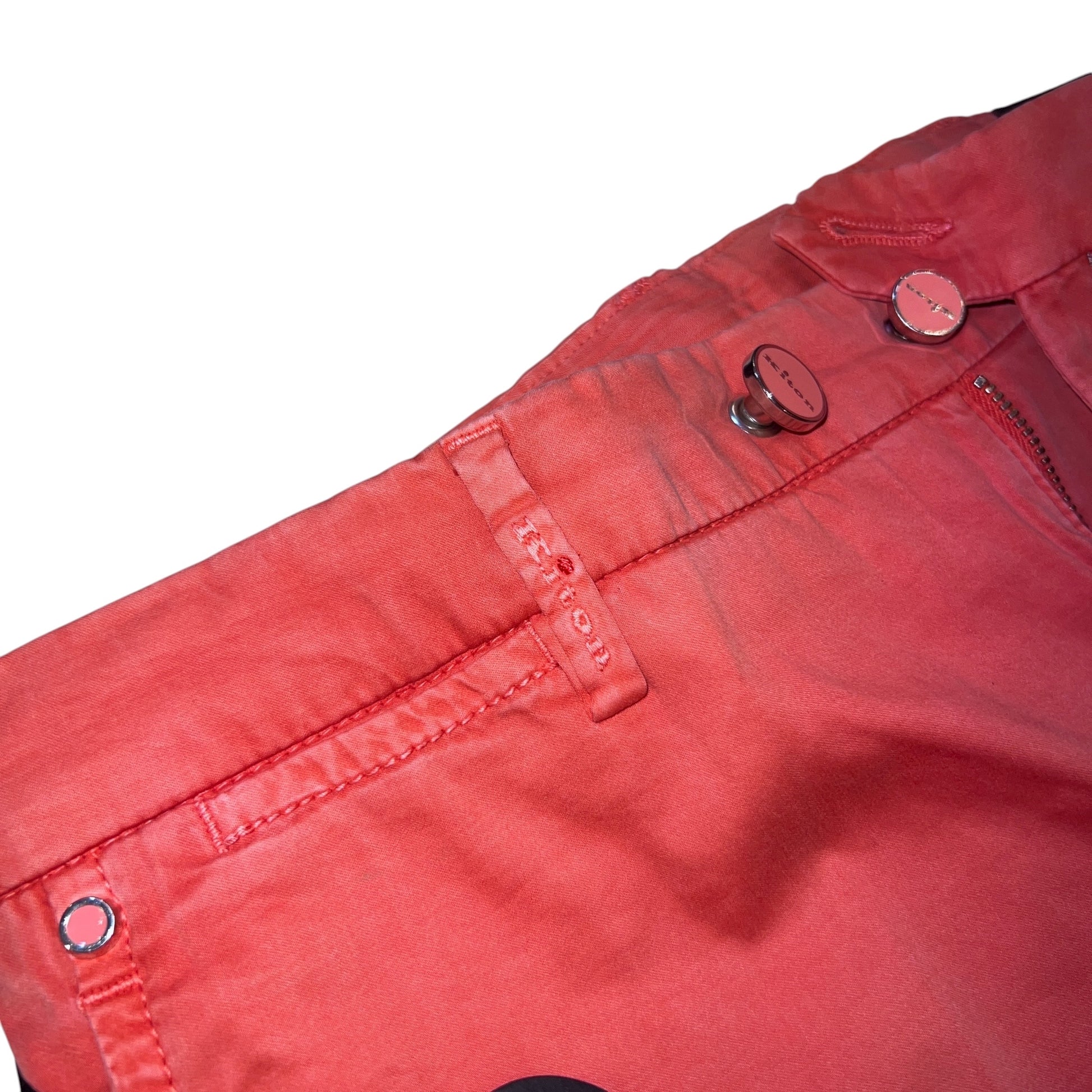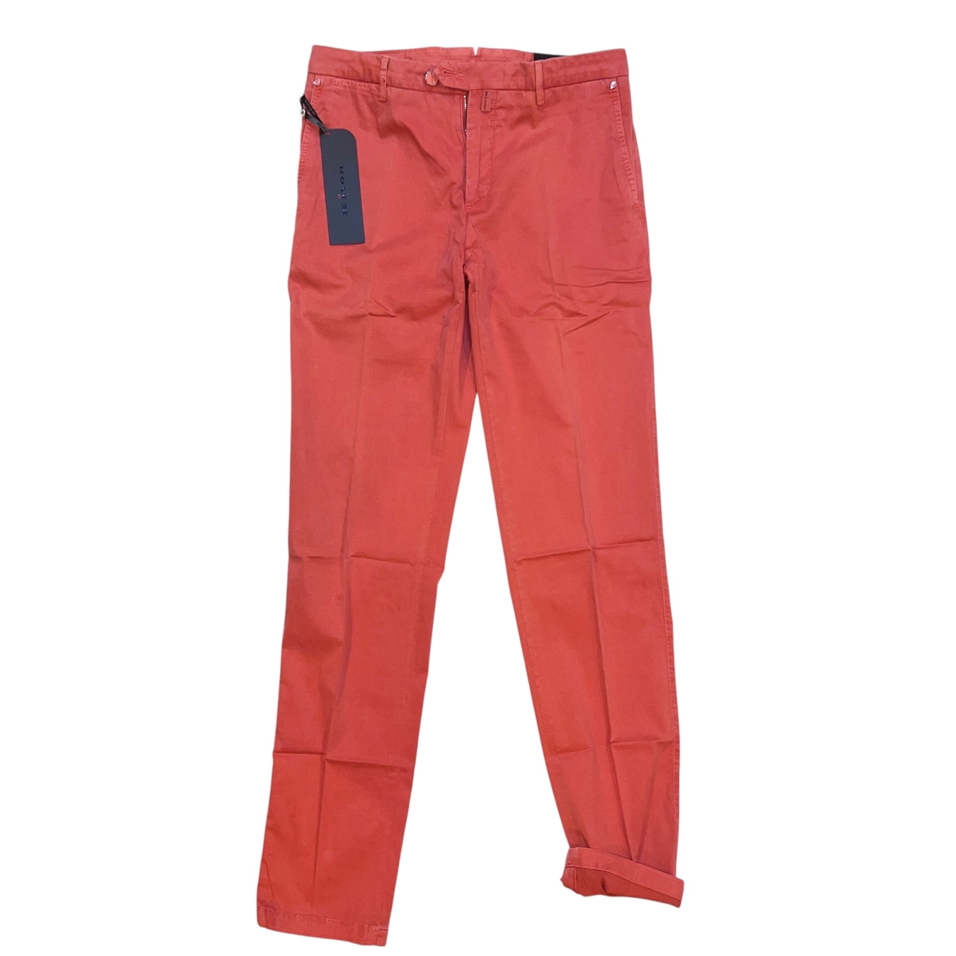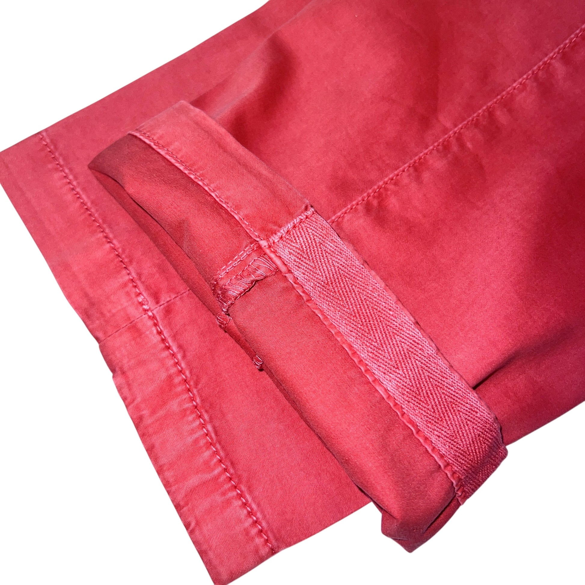 なんとも言えない妙味な洗いのかかったコーラルレッドのパンツ。