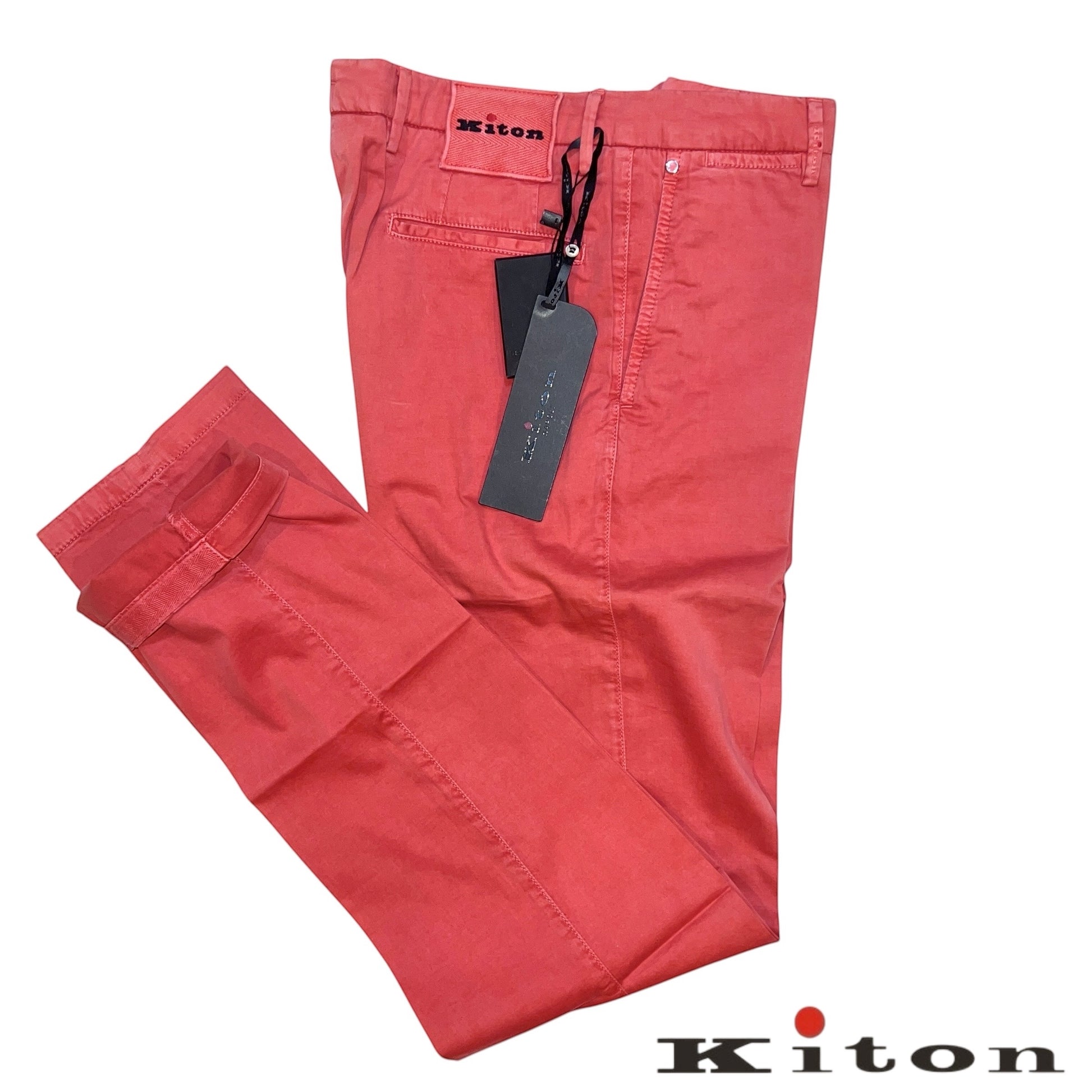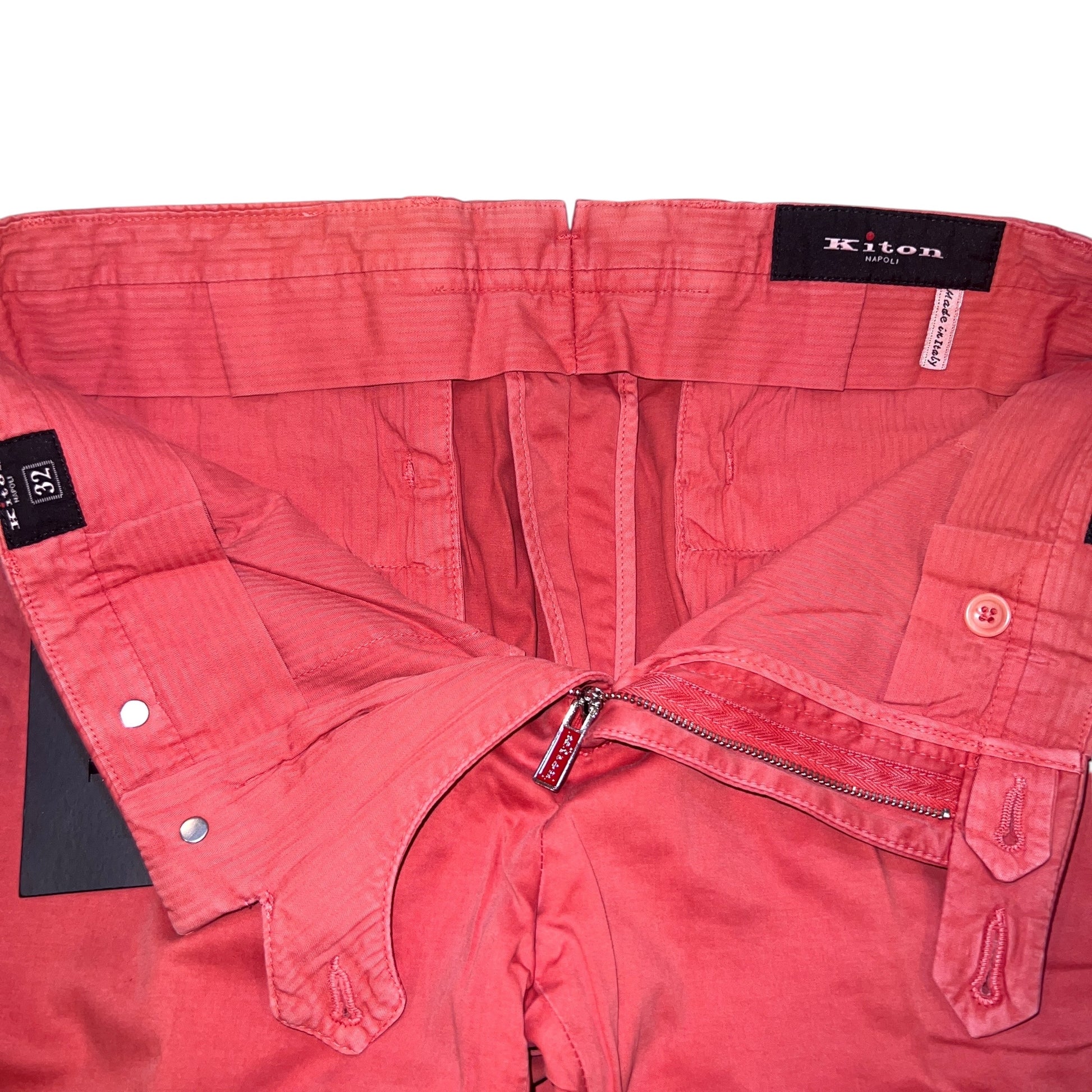 22万 新品 Kiton 総手縫い シルク ウォッシュドコーラル パンツ 32