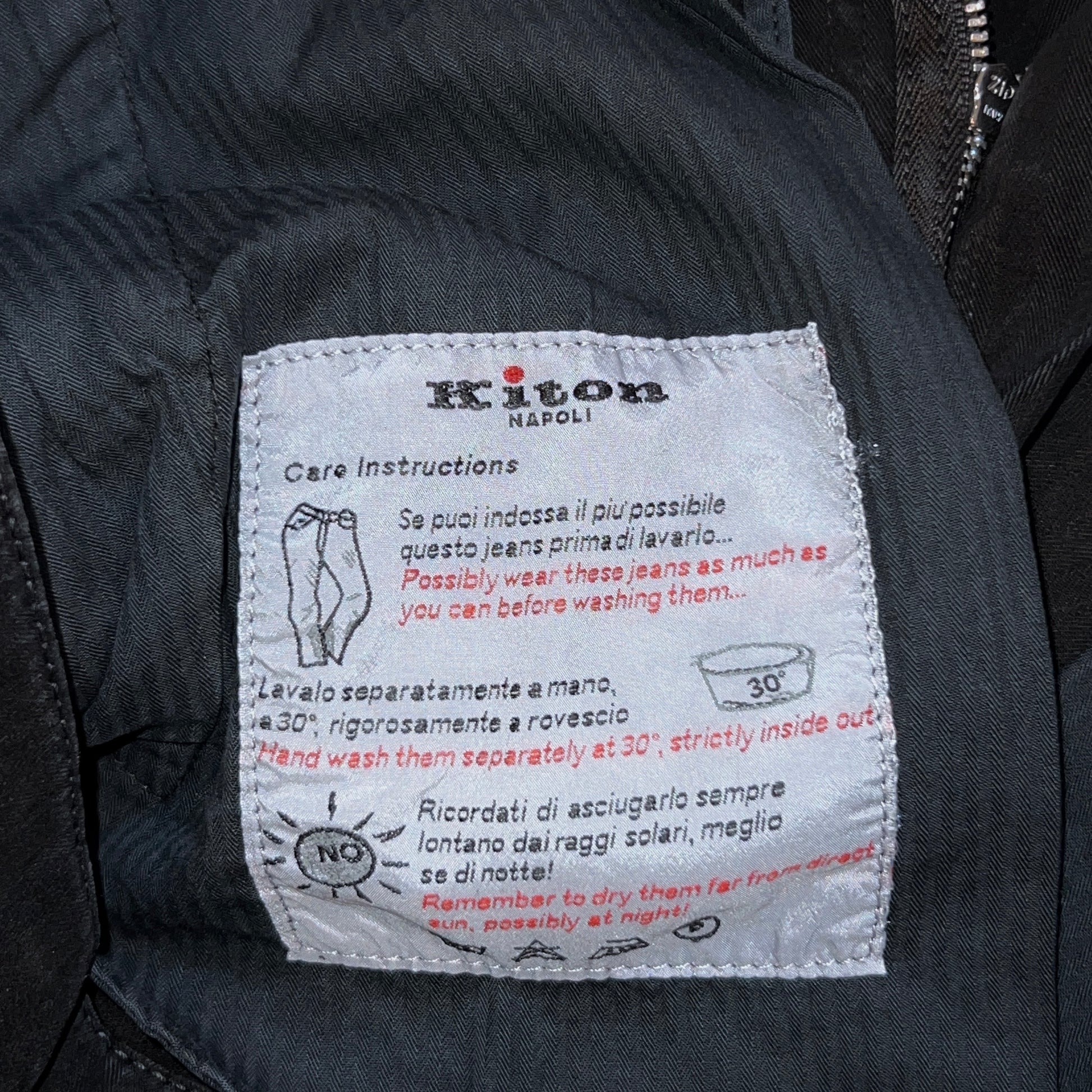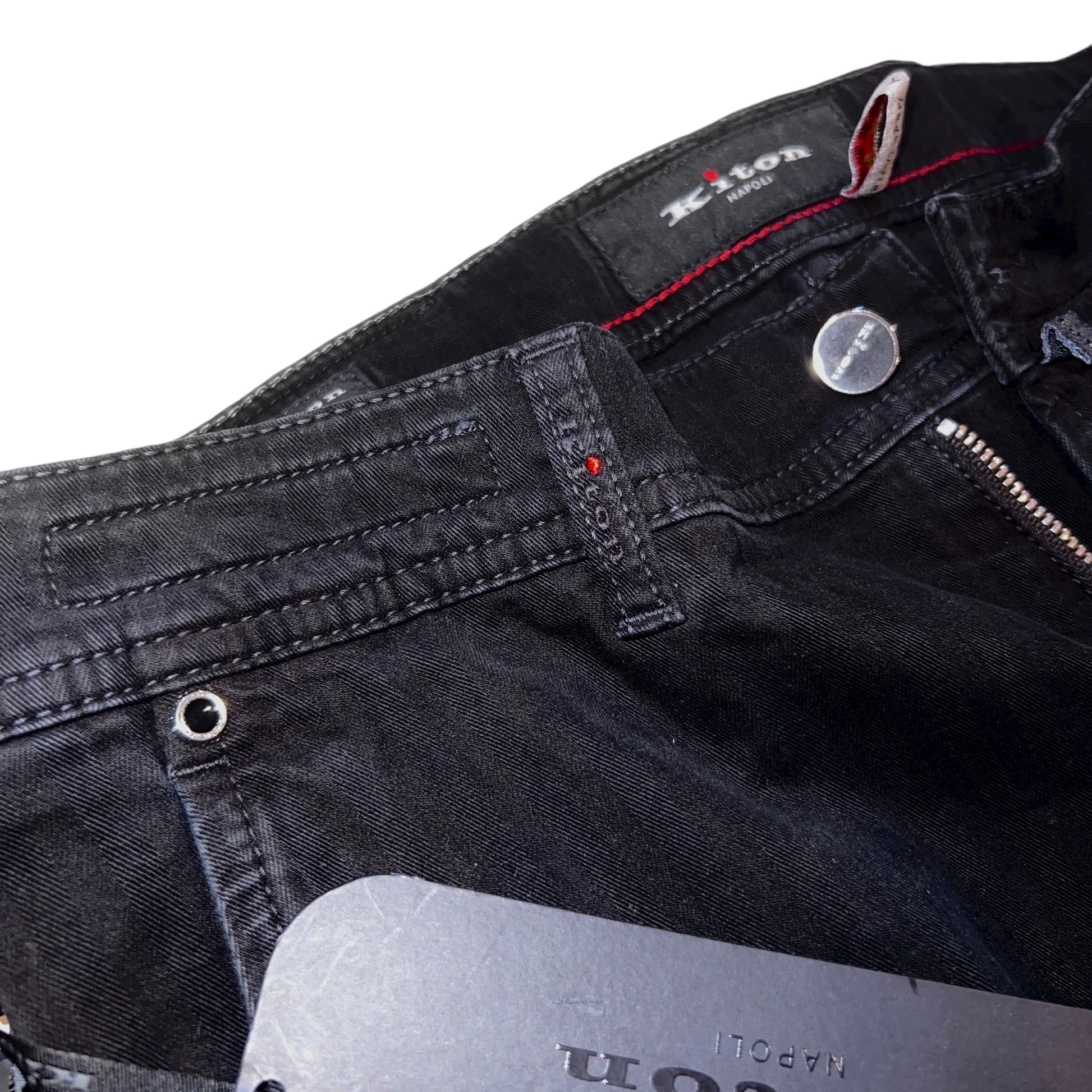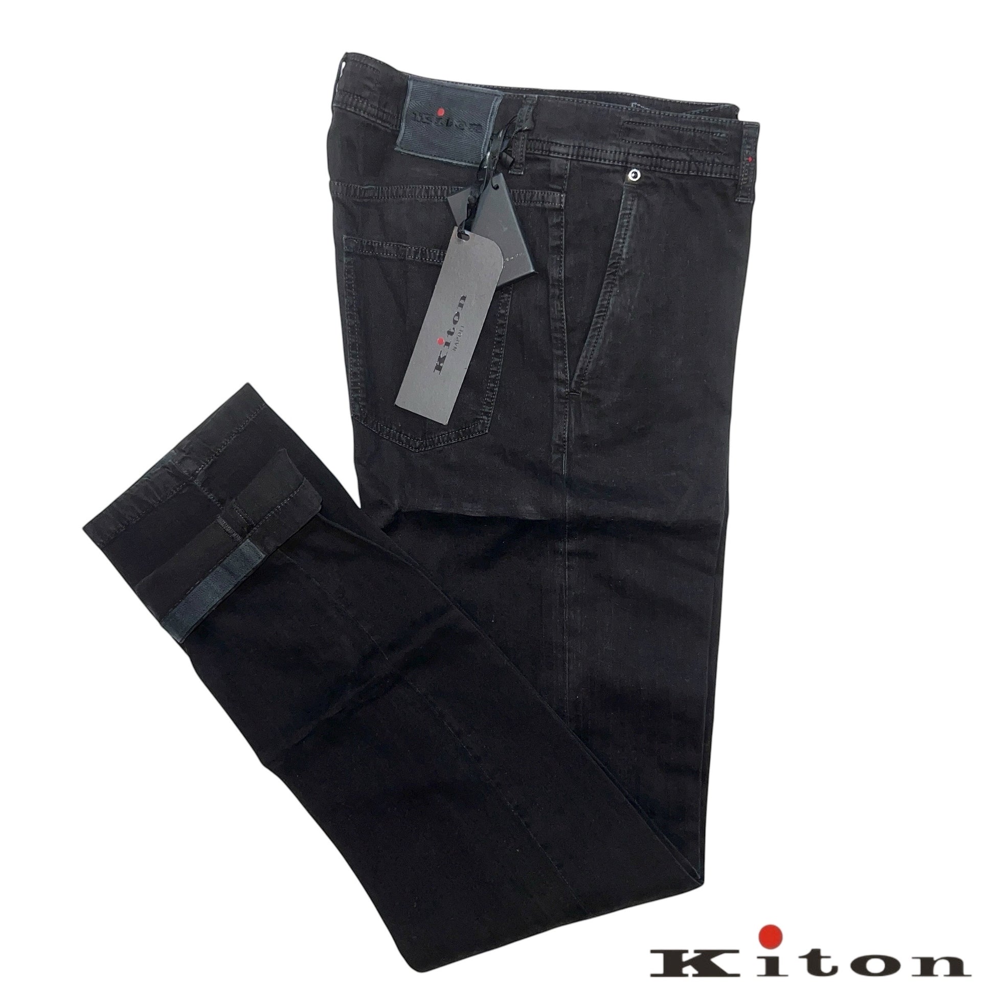 24万 新品 Kiton 総手縫い カシミア ヘリンボーンブラック パンツ 32