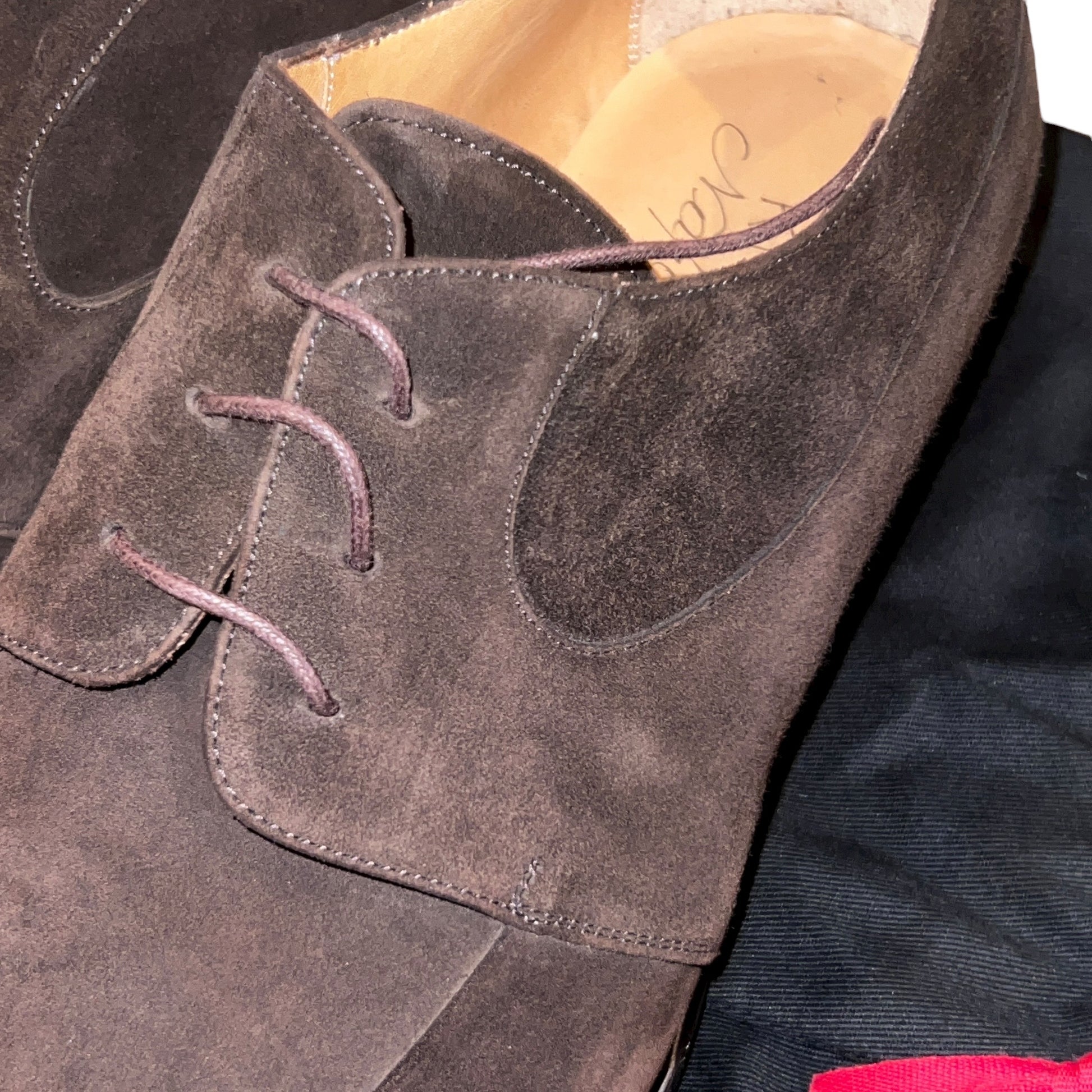 48万 新品 Kiton 総手縫い スエード ダービーシューズ 茶 10.5